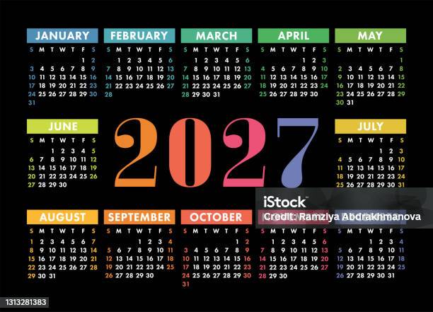 Calendar 2027 English Colorful Vector Horizontal Wall Or Pocket